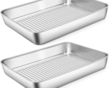 P P CHEF Sturdy Food-Grade Stainless Steel Rectangle Baking Pans Set of 2, 12.4 x 9.7 x 1.8 Inches