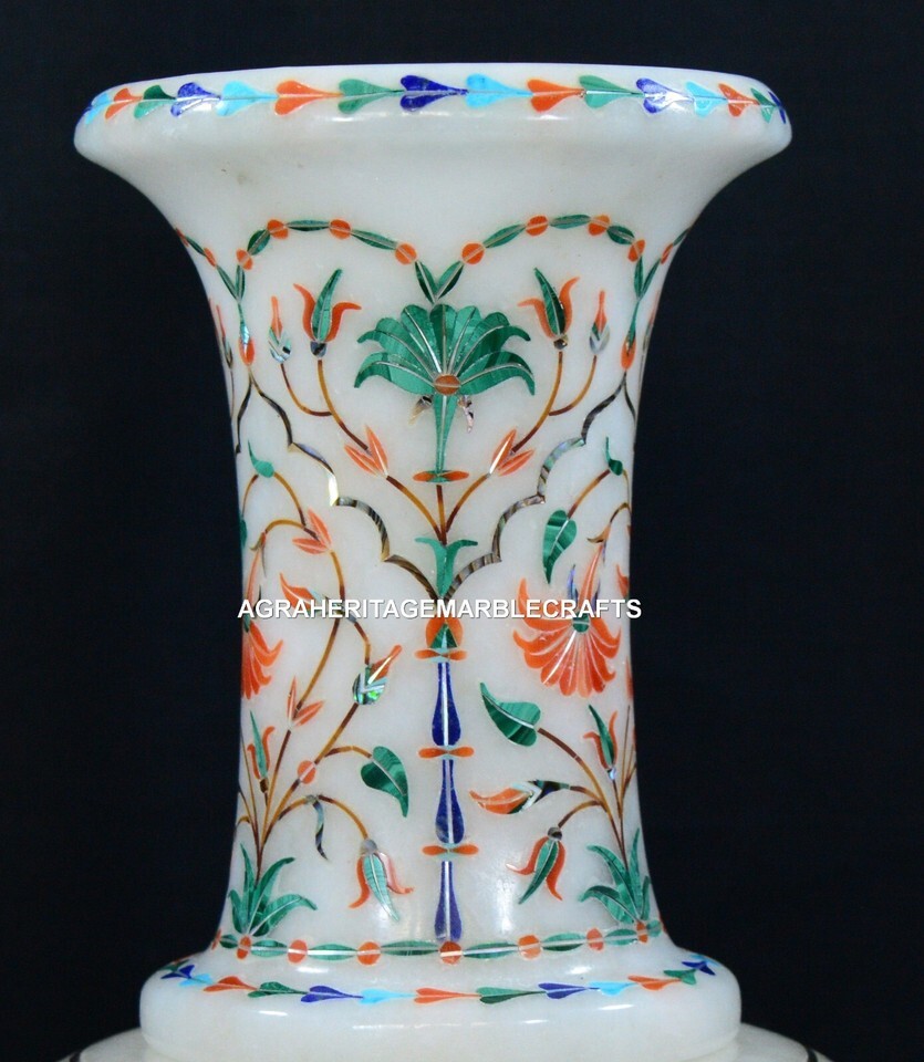 Der Marmor zum Intarsien des Halbedelsteins stammt aus der Stadt Makrana, Rajasthan Indien.