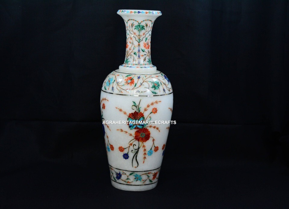 Diese schone Kunst ist eine sterbende Kunst von Agra, Indien. Die Handwerker, die diese schone Kunst herstellen, sind die Nachkommen jener Familien, die das Tajmahal im 17. Jahrhundert bauten. Tajmahal ist ein Denkmal der Liebe und eines der sieben Weltwunder. Sie konnen leicht das Kunstwerk sehen, das mit der gleichen Technik an den Wanden des Tajmahal gemacht wurde.