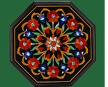 - 12" Black Marble Top Handmade Coffee Table Top Precious Inlay Stone
