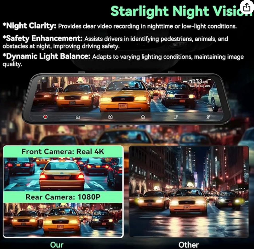 Rear View Mirror Camera with Carplay Android Auto, Mirror Dash Cam