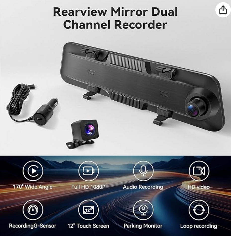 - 12" Car Mirror Dash Cam Recorder Rear View Reverse Parking System