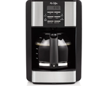 Perfect for busy days, this sleek, stainless steel Mr. Coffee 12-Cup Programmable Coffee Maker features a flexible 3 Ways to Brew System that makes it easy to brew a delicious cup of coffee exactly how you like it. With the touch of a button, choose between Regular, Strong Brew, and Decaf, and enjoy your coffee in minutes! Just add your coffee, use the Water Window to check the water levels, and you?re good to go! The Delay Brew setting makes it easy to schedule brewing ahead of time, so you can wake up to a fresh cup. Want your coffee right away? Grab-a-Cup Auto Pause lets you get a cup before the brewing cycle is over. The convenient 4-Hour Auto-Shutoff function automatically turns off the coffee maker, so you don?t have to. Whether you?re brewing coffee for yourself or for a crowd, this feature-packed coffee machine is a great addition to your kitchen coffee station.