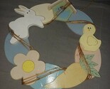 12” EASTER Wreath Spring Wooden Rabbit Flowers Duck Carrot Door Decor