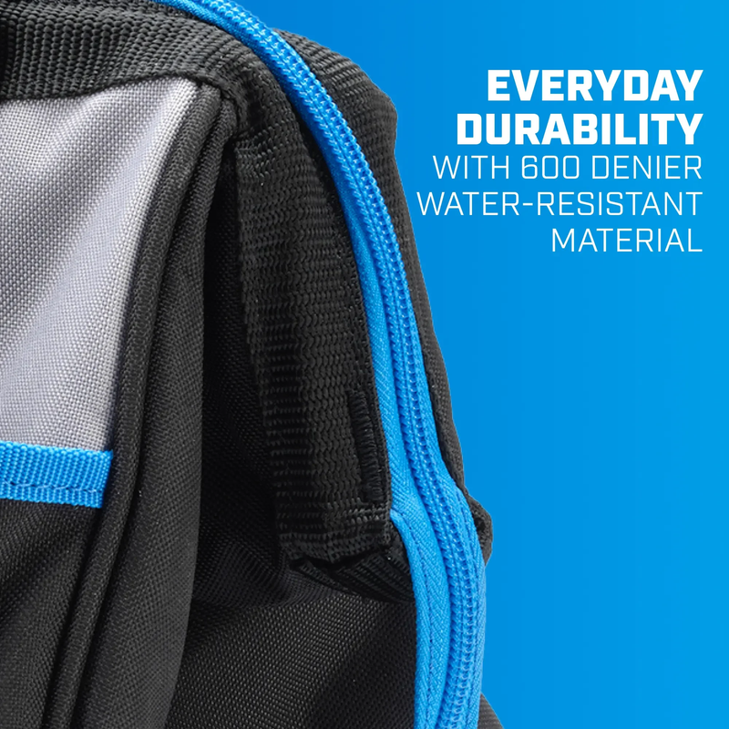 - 12-Inch 600-Denier Tool Bag, with Full Length Zipper and Double Strap Carry Hand