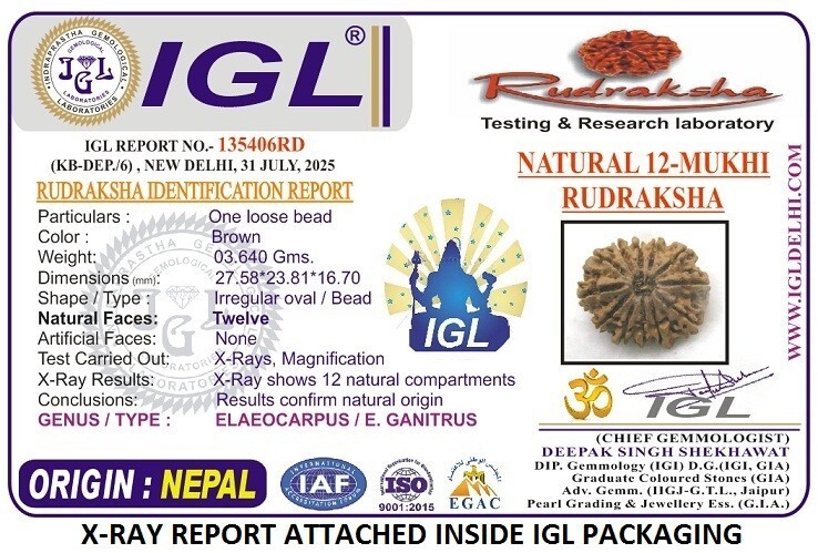12 Mukhi Rudraksha - Collector Size Nepal Origin Bead - 27.58 mm - IGL Certified