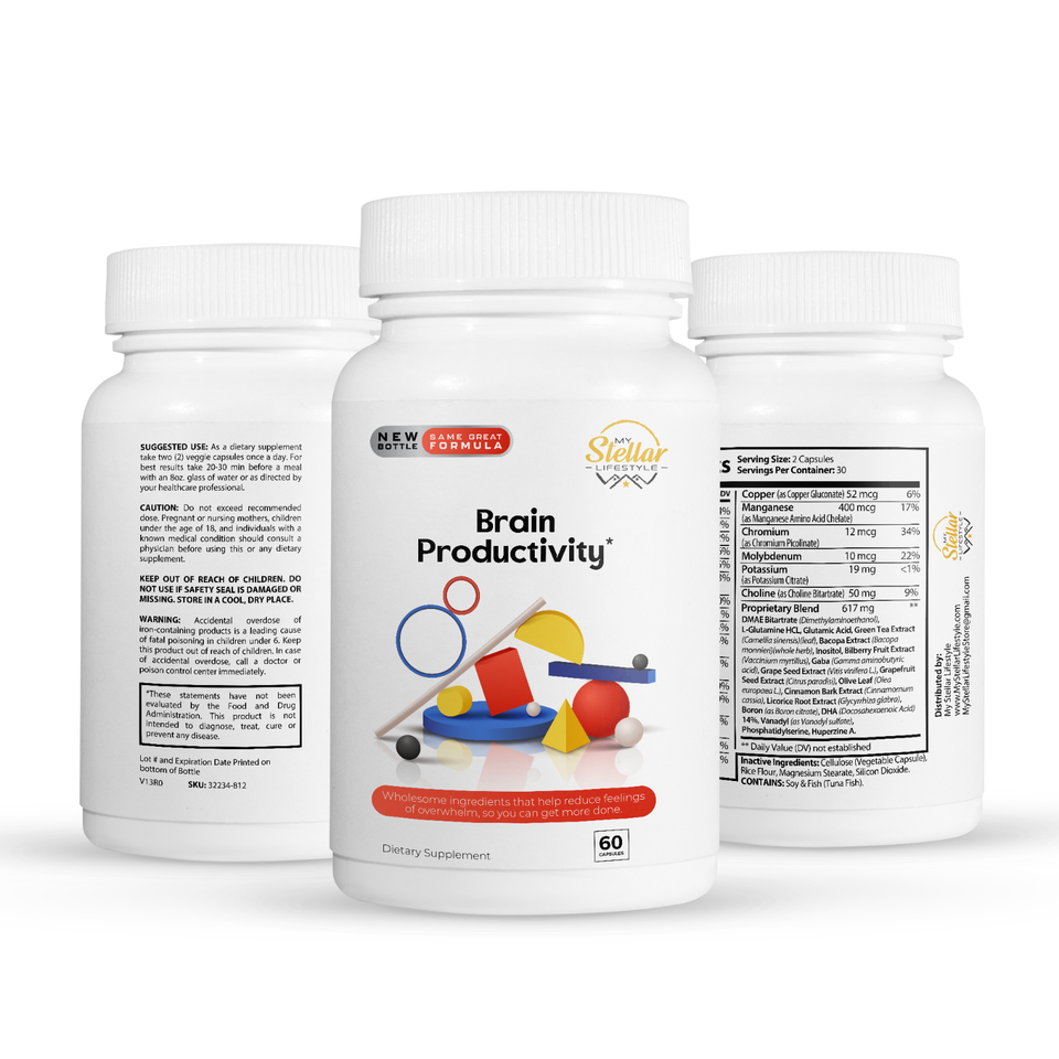 12 Pack Brain Productivity, helps reduce overwhelm-60 Capsules x12