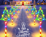 12 Pack Christmas Solar Pathway Lights Outdoor Decorations, 10 Modes Christmas Tree Candy Stake Lights with 156 Colorful Leds, 29.5 FT Waterproof Solar Xmas Decor for Walkway Yard Lawn Porch Holiday