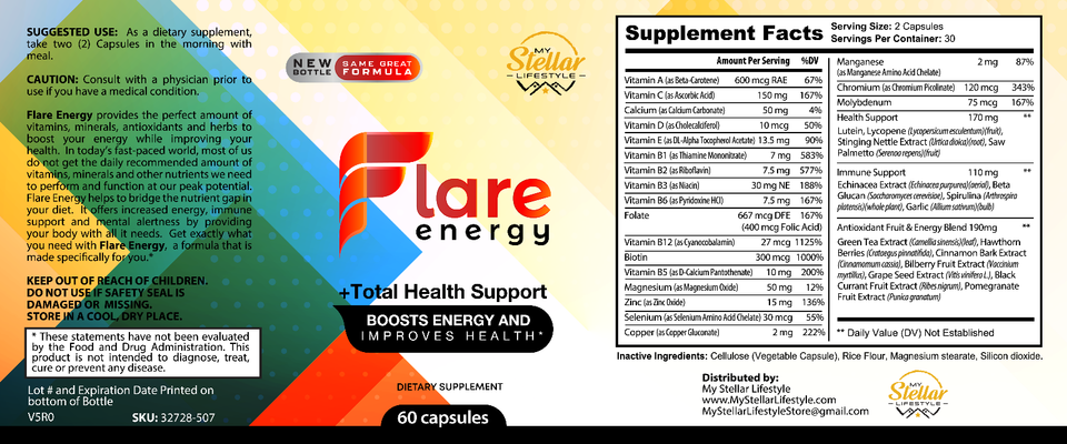 12 Pack Flare Energy, apoyo total a salud y potencia la energía-60 Capsulas x12