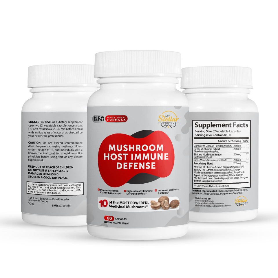 12 Pack Mushroom Host Immune Defense, promotes focus, clarity memory-60 Capsules x12
