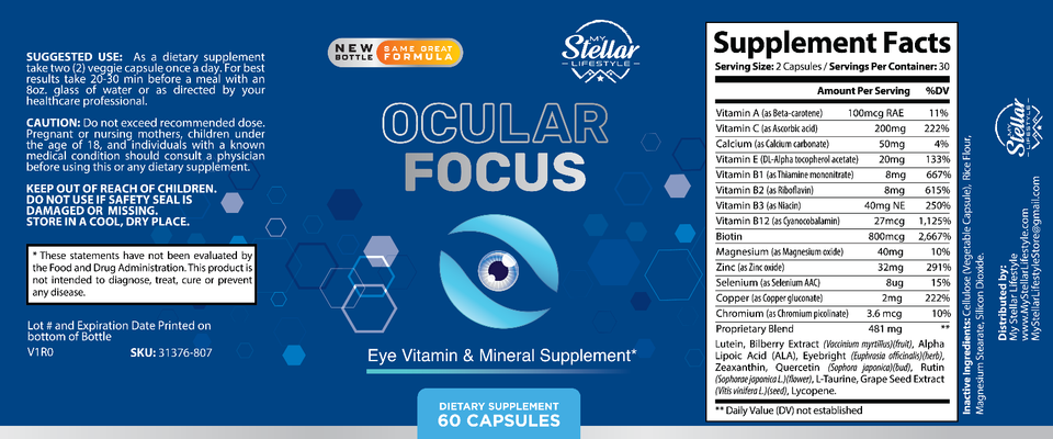 - 12 Pack Ocular Focus, eye vitamin & mineral supplement-60 Capsules x12