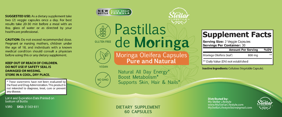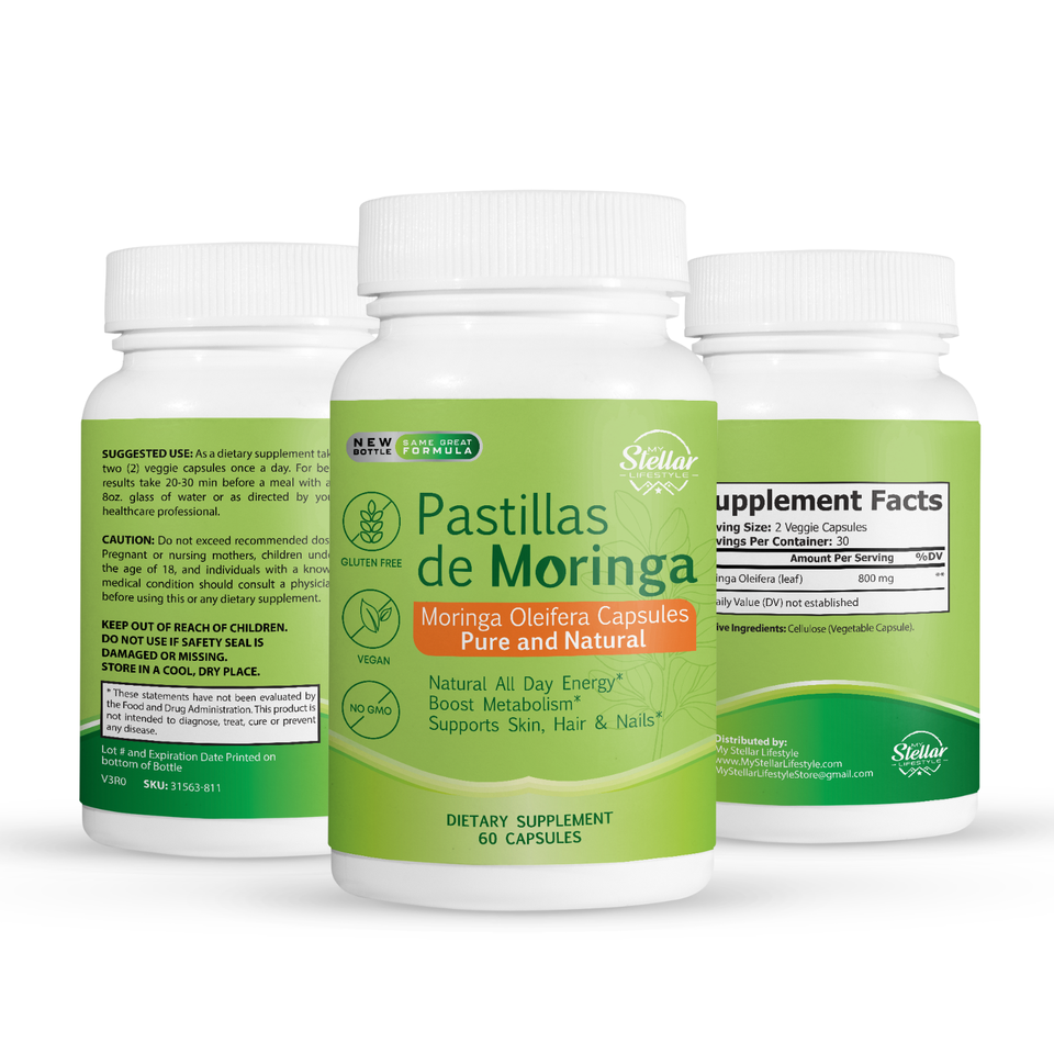 12 Pack Pastillas de Moringa, boost metabolism supports skin, hair and nails-60 Capsules x12