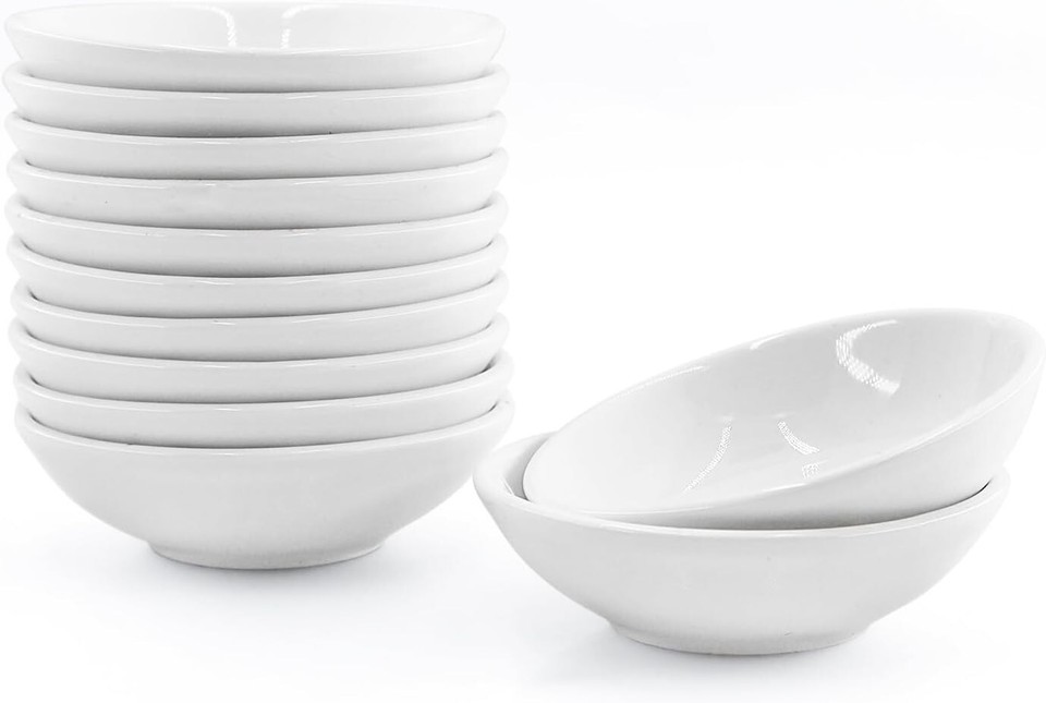 - 12 Pack Soy Sauce Dish Small Ceramic Dipping Bowls Bulk, 1.2 Oz (3 x 3 x 0.8 in)