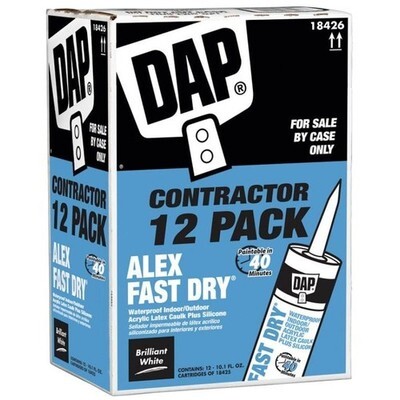 - 12 Pack of 10.1 oz Dap 18425 Alex Fast Dry White Acrylic Latex Caulk Plus Silic
