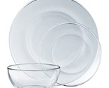 The 12-piece dinnerware set has place settings for 4 people Includes four of 10.6" glass dinner plates, 7.5" glass salad plates, and 6" glass bowls Beautiful, clear glass construction The clean, modern design will update your table Great for everyday dining as well as entertaining Complements casual or formal table settings Clear glass dishes blend beautifully with any color placemat or tablecloth The glass bowl measures 3" H Dishwasher safe for easy cleanup Not safe for microwave Imported