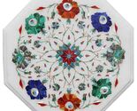 - 12" White Marble Coffee Corner Table Top Multi Stone Semi Precious Inlay Decor