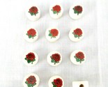 - 12 WHITE w RED ROSE FLOWER GREEN LEAF CERAMIC DISC BEADS CRAFT DIY JEWELRY 14mm