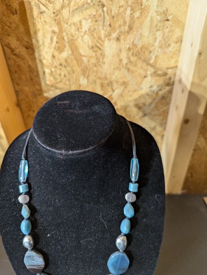 - 12" long bead and glass stone necklace marked with C1946