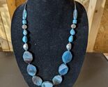 A 12-inch long beaded necklace featuring glass stones, with a lobster closure. The necklace is not antique or vintage, and is made of acrylic material. It has a blue main stone in oval shape, and is marked with C1946. This original piece is designed in a multicolor style for all occasions, in the fashion jewelry department. It is not signed or customized, and not handmade.