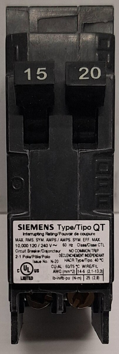 - 12 x New Siemens Q1520 15/20 15A 20A 120/240V Twin Tandem Pole Circuit Breakers