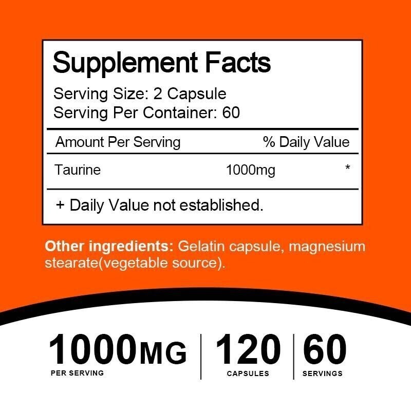 - 120 Capsules 1000Mg Taurine For Cardiovascular Health Antioxidant Muscle Support