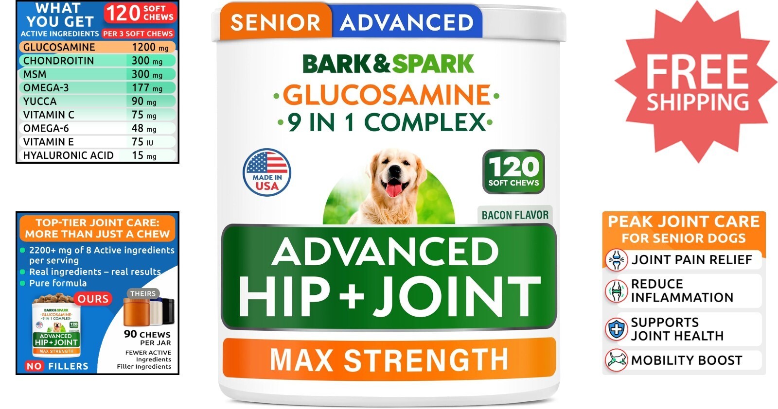 Rich in Glucosamine, Chondroitin, MSM sulfate, and Omega-3-6.