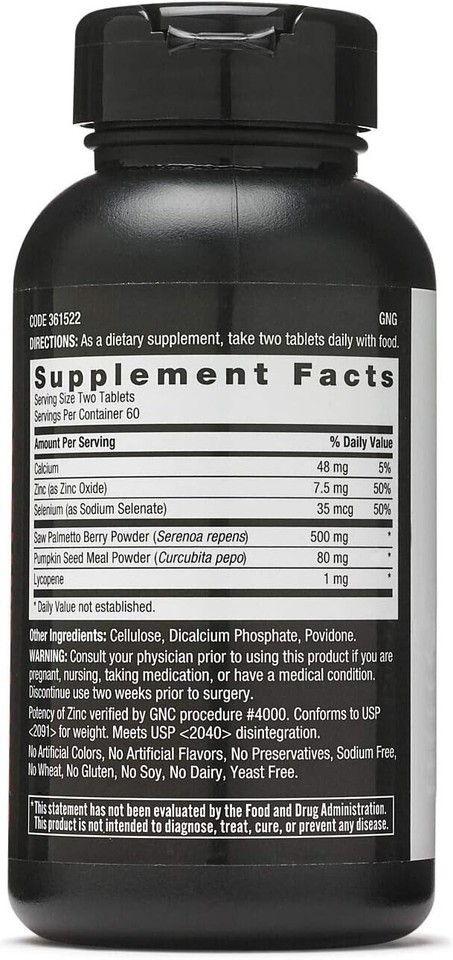 Ingredients: Calcium,Saw Palmetto,Selenium,Zinc