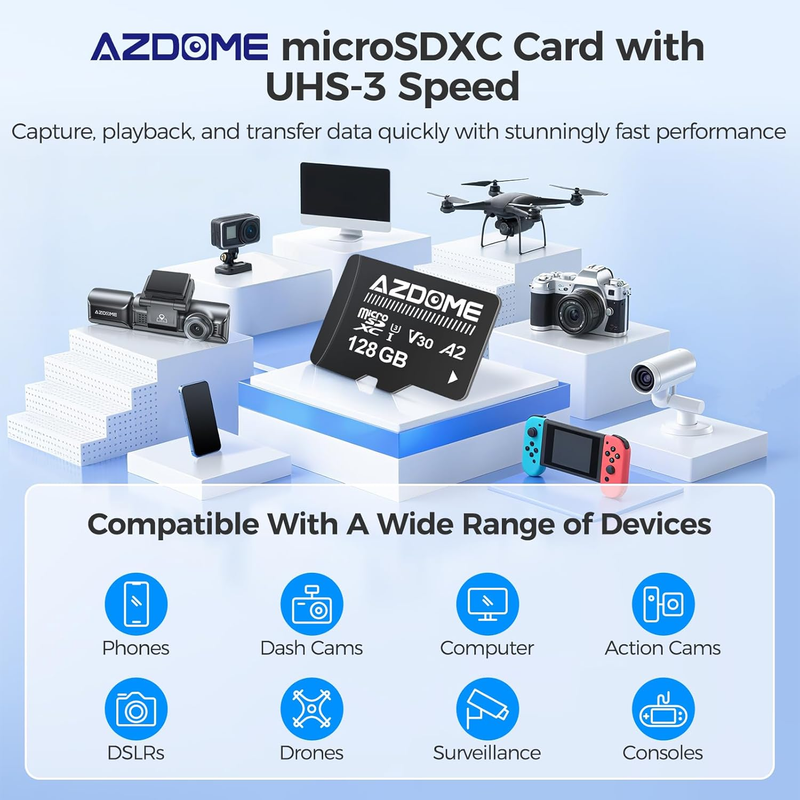 Wide Compatibility: Works with all AZDOME dash cams and most other dash cams on the market. Ideal for video monitoring cameras, surveillance cams, smartphones, tablets, laptops, desktop computers, CCTV, body cams, drones, and more.