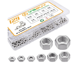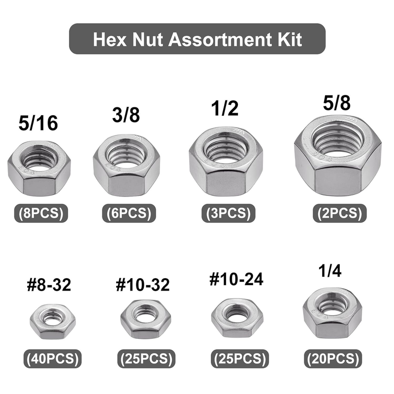 - 129-Piece 304 Stainless Steel Hex Nut Assortment Kit, Sizes 8-32 to 5/8-11