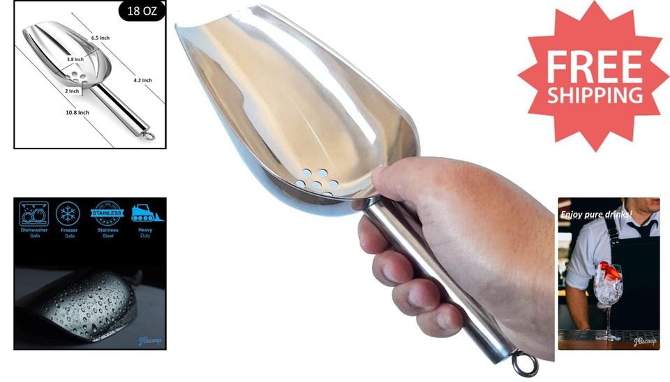 - 12oz Stainless Steel Ice Scoop with Drain Holes - Versatile & Stylish Design