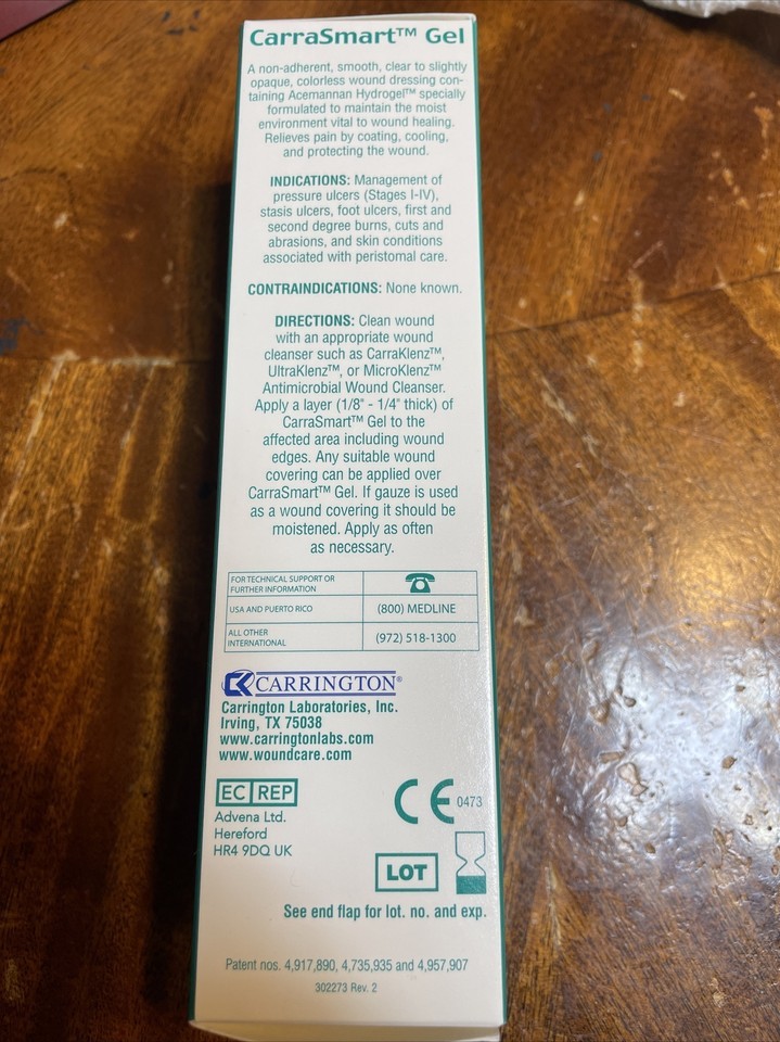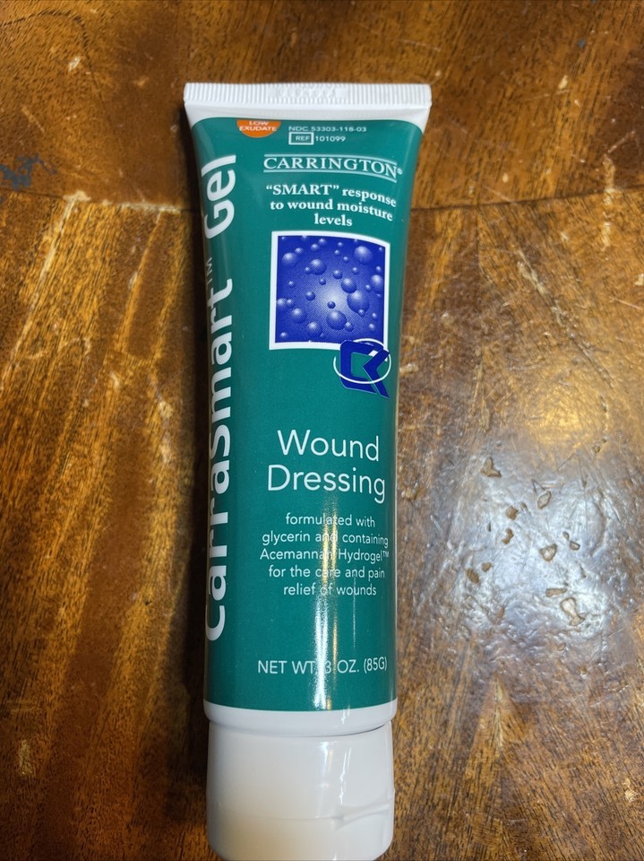 12x Hydrogel Wound Dressing 3oz tube from Carrington labs this stuff is good. This is the best wound dressing I have ever in Canada. Expiration date is 2012 but it really works the price reflects that. Biscuit and treatment I?ve ever had.