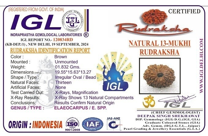 - 13 Mukhi Rudraksha / Thirteen Face Rudraksh - Java - 19.55 mm - IGL Certified