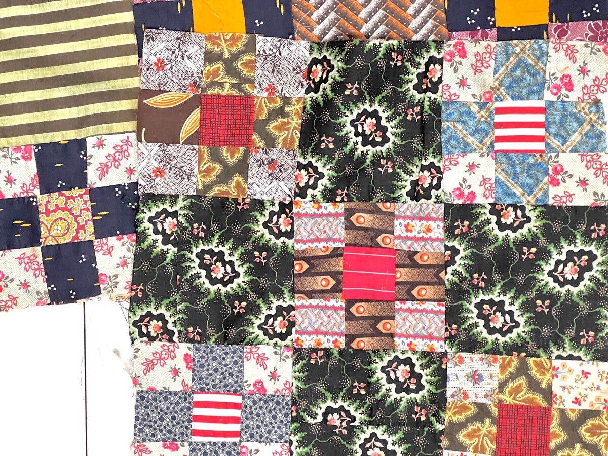 Lovely feed sack quilt squares, 13 different patterns vintage feed sack fabrics for quilts or crafts. All feature many different colors. VG quality and all hand sewn.