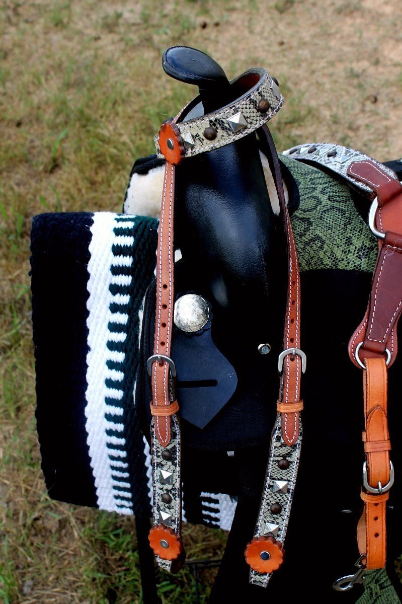 13 Western Cordura Trail Barrel Pleasure Horse SADDLE Bridle Tack Green 4969