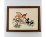 - 13"X10" 90s Wooden Framed Handmade Embroidered Disney Bambi Thumper Flower Art