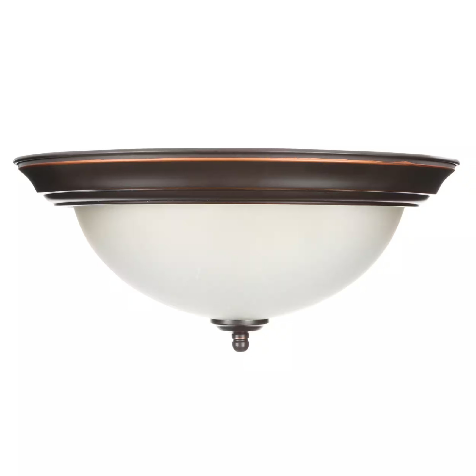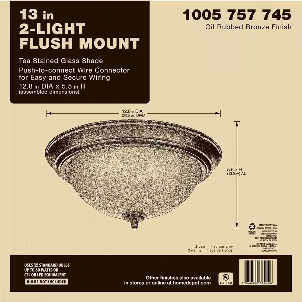 - 13 in. 2-Light Oil Rubbed Bronze Flush Mount Tea Stain Glass, No Bulb Included
