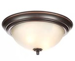 13 in. 2-Light Oil Rubbed Bronze Flush Mount Tea Stain Glass, No Bulb Included