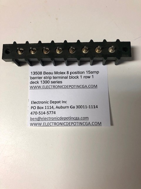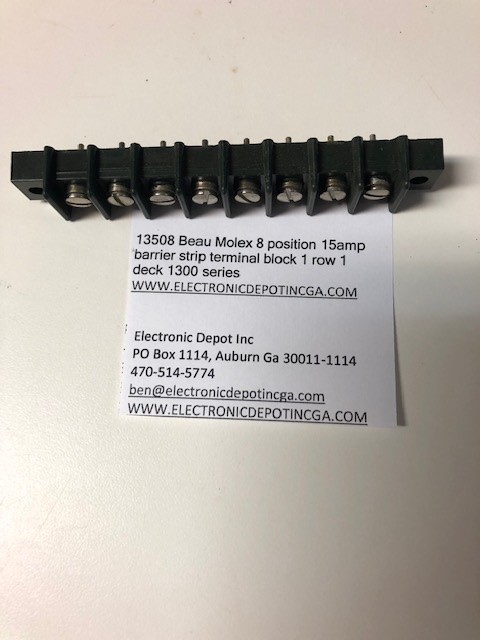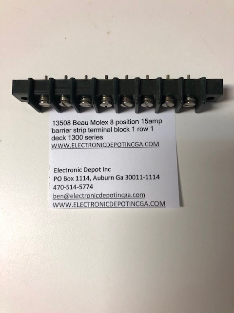- 13508 Beau Molex 8 position 15amp barrier strip terminal block 1 row 1 deck 1300