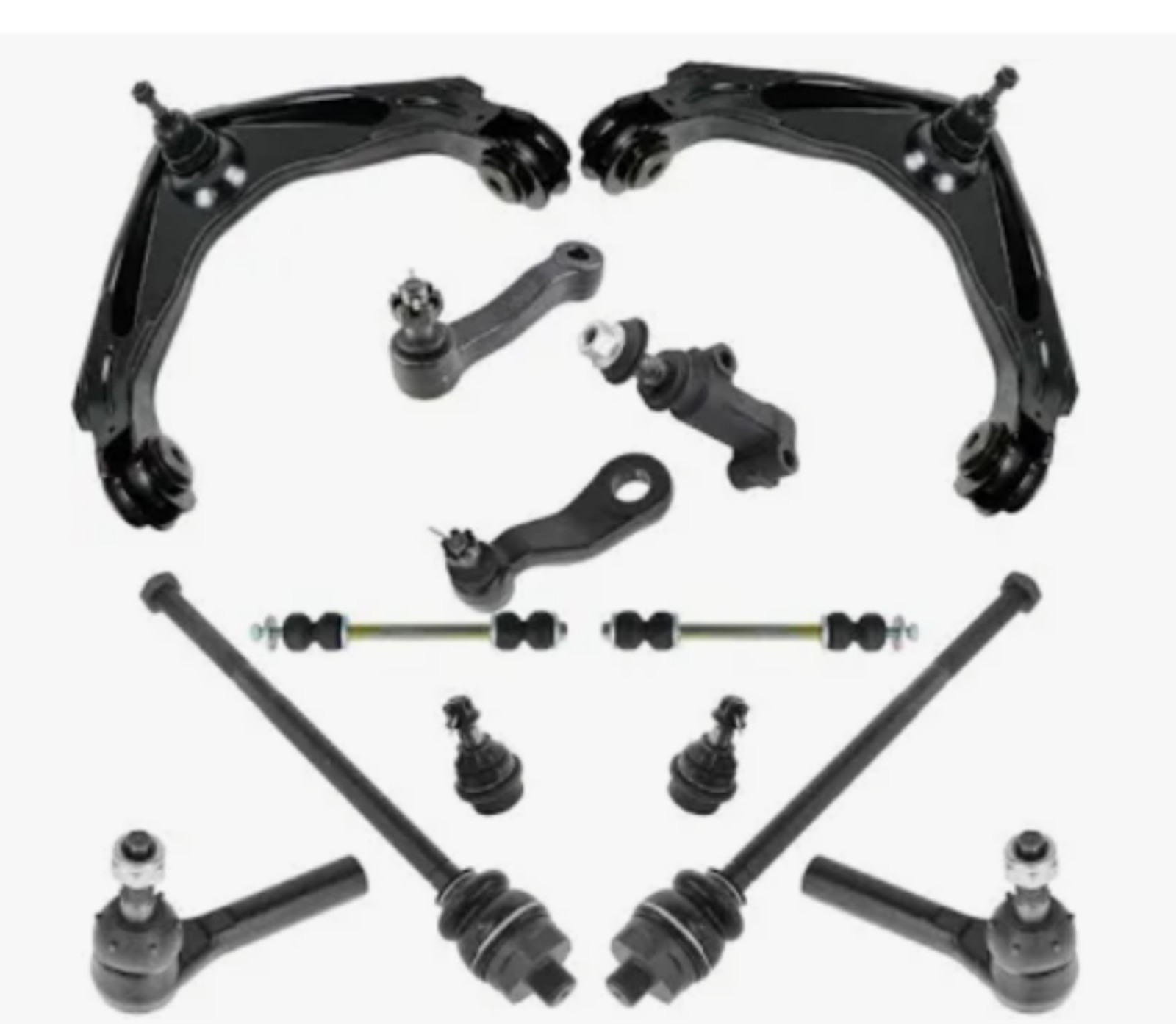 Exact item set is shown. New open box without original packaging. Each piece includes its mounting hardware and grease fittings, if applicable. Set weight 45 lbs. Made in China. No returns on installed items or partial sets. This item is a new, opened customer return. It has been inspected and passed quality control to insure the condition described and contents are accurate. Please review actual photos as stock photos are not the actual item, our photos are. You will ONLY receive exactly what is shown in photos, regardless of what might have originally been included. Please review our business policies in our store for information regarding returns, shipping and warranties.