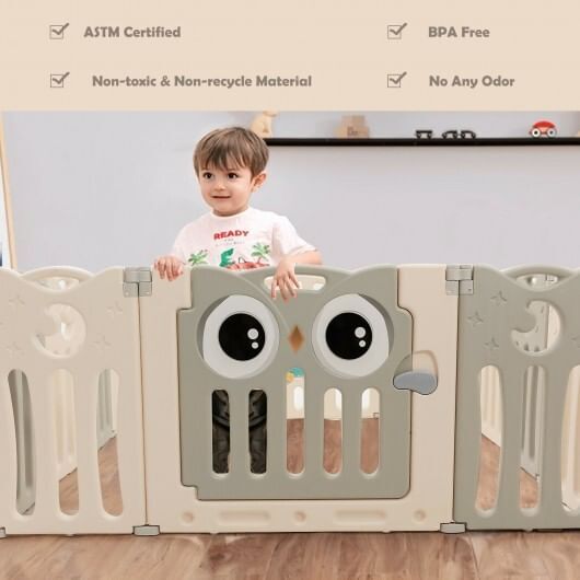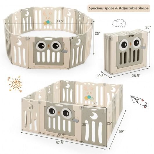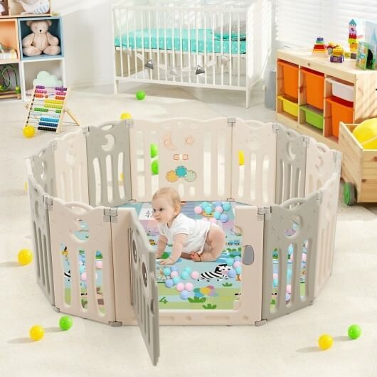 14-Panel Baby Playpen Kids Activity Center Foldable Play Yard with Lock Door-Beige - Color: Beige