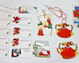 14+ Vintage Christmas Tags Red Flocked Plus Candy Canes Candles Angel Red Barn +
