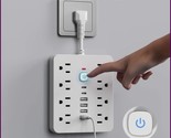 - 14-in-1 Surge Protector Power Strip with 8 AC, 4 USB & 2 Type-C Ports –Flat Plug