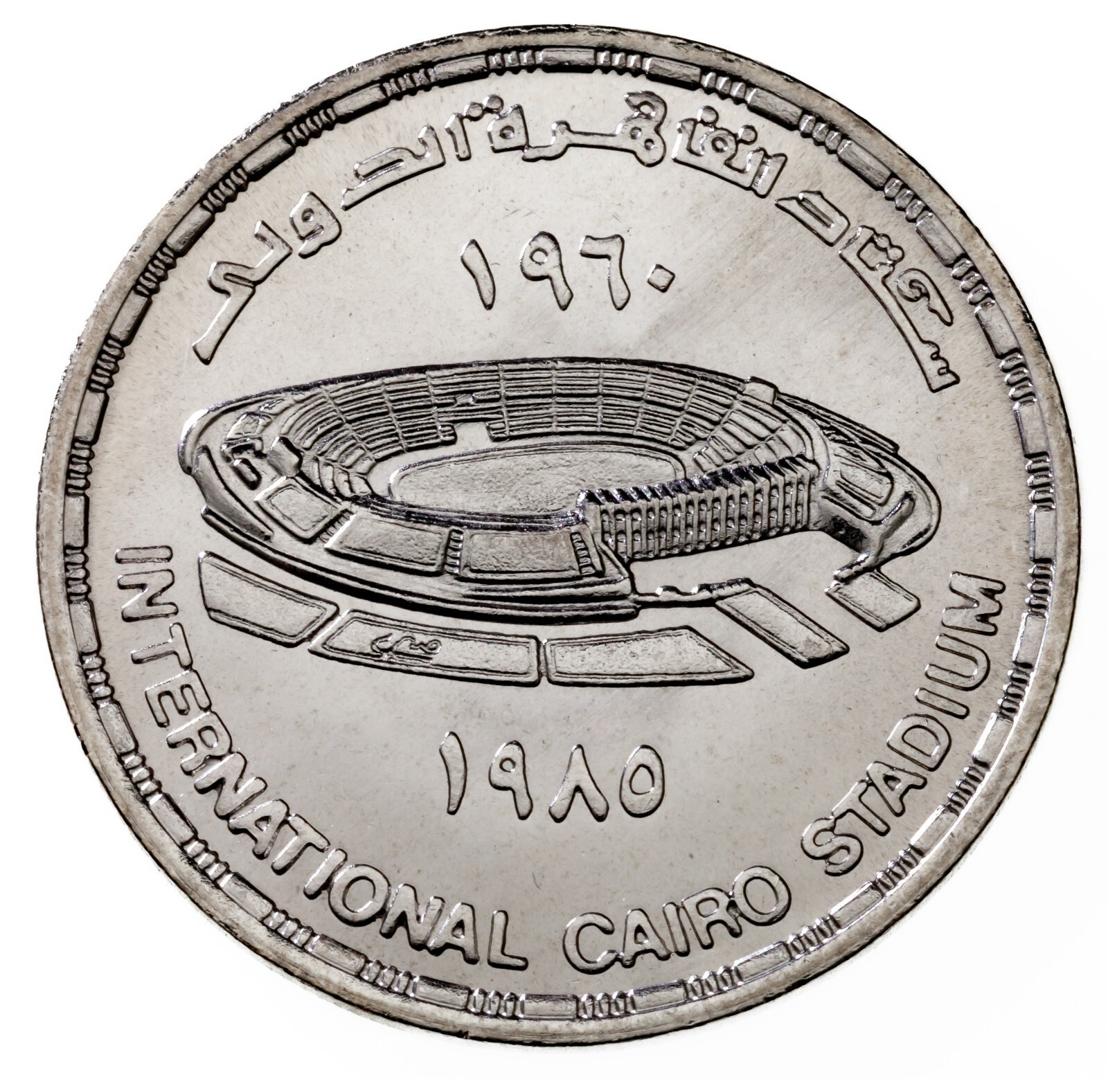 - 1405-1985 Egipto 2.3kg Moneda de Plata En Bu , 25th Anni. Cairo Estadio Km 578