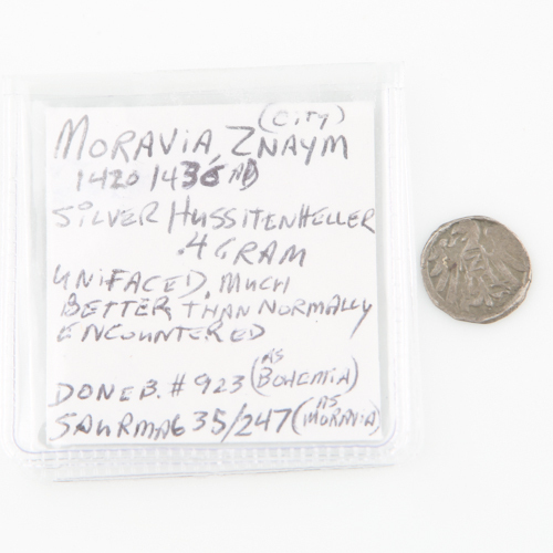 1420-1436 Bohème Silber Heller Münze XF Znaim Mähren Hussitenheller D #923
