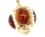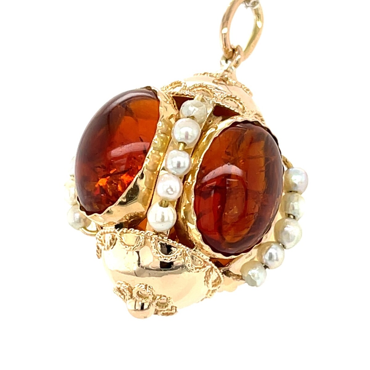 Kugelanhanger aus 14-karatigem Gelbgold, großer Citrin-Cabochon und Saatperle