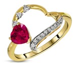 14K SOLID GOLD RING WITH NATURAL DIAMONDS & HEART RUBY |
