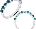 - 14K Solid White Gold Round Half Eternity U Shape Blue Diamond Bridal Ring 0.90ct
