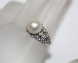 14K White Gold Round (9mm) White Pearl Diamond Accent Ring Size 7 (7.8 gr)