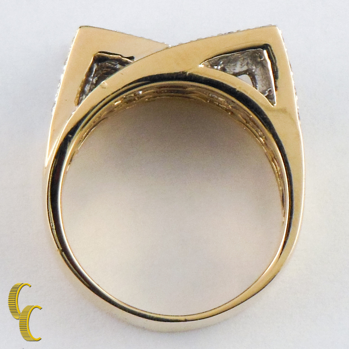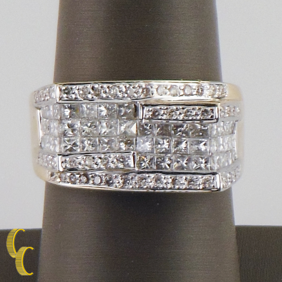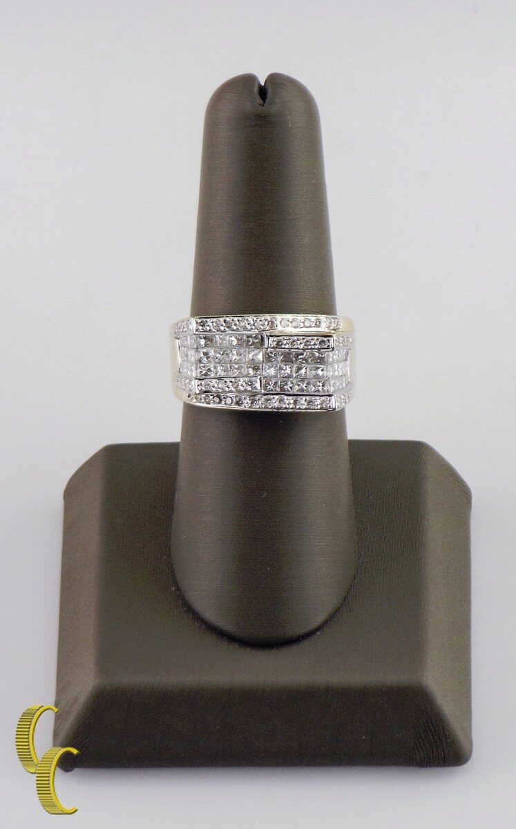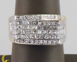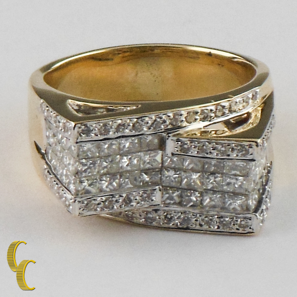 14K Yellow Gold Princess and Round Cut Diamond Plaque Ring Size 9 Apx. 3.25 CTW