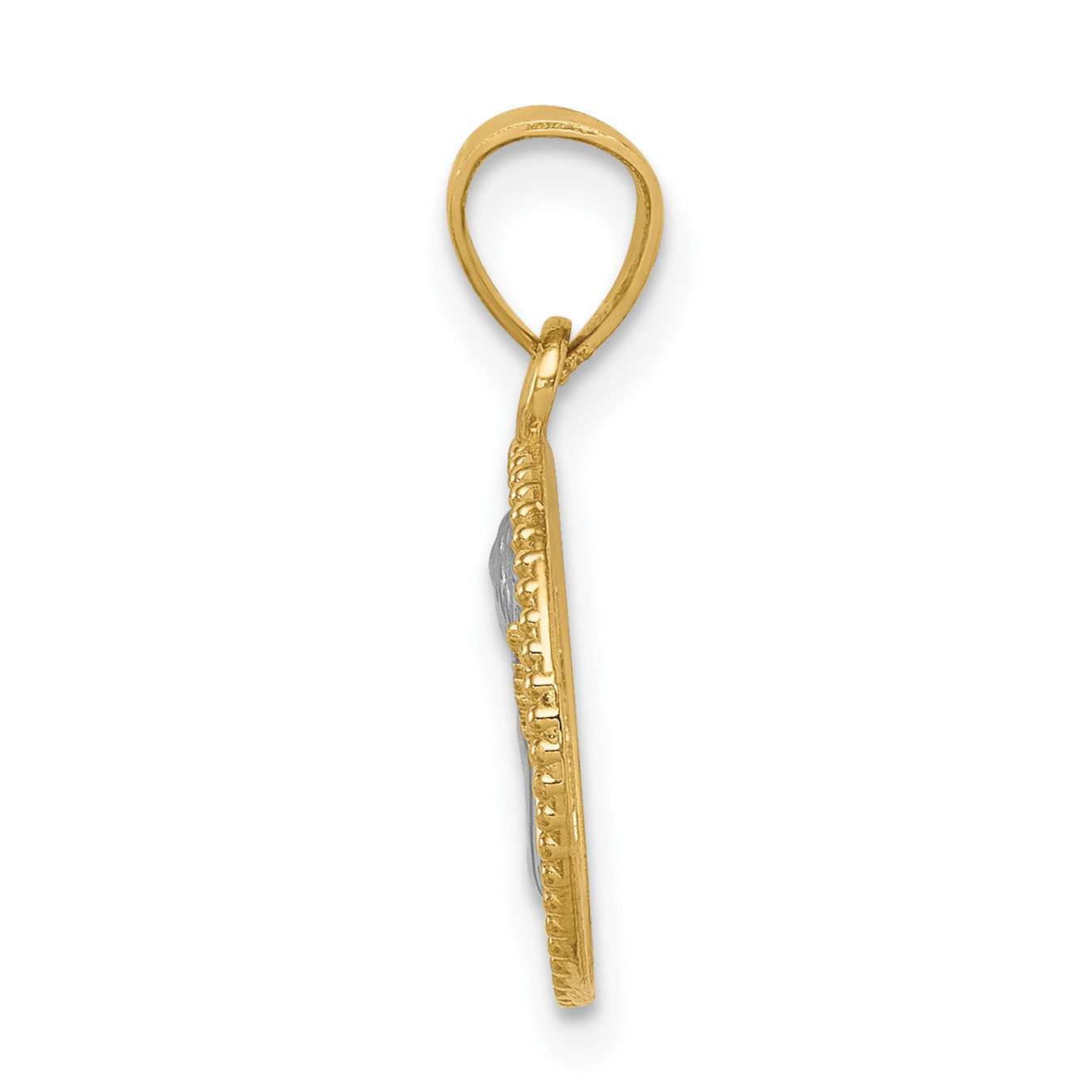 14K and White Rhodium Angel Round Pendant C4658
